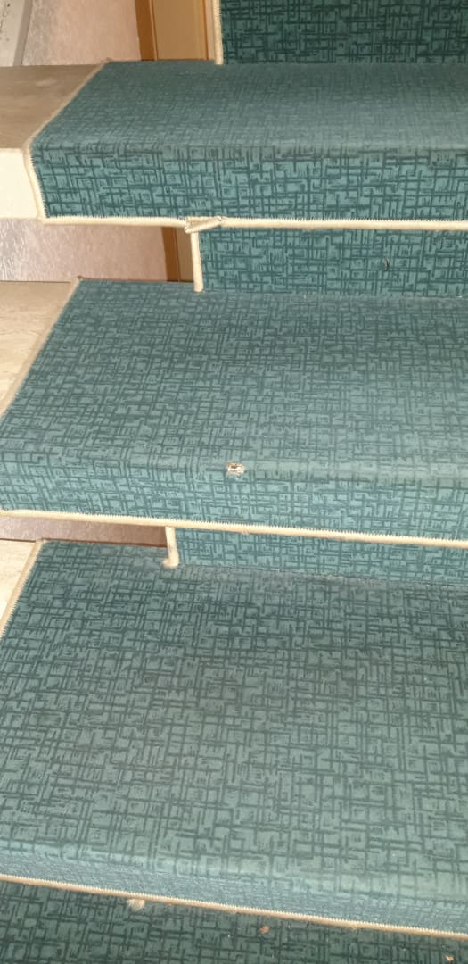 Treppenhaus: Zerschlissene, kaputte Treppenbeläge.
