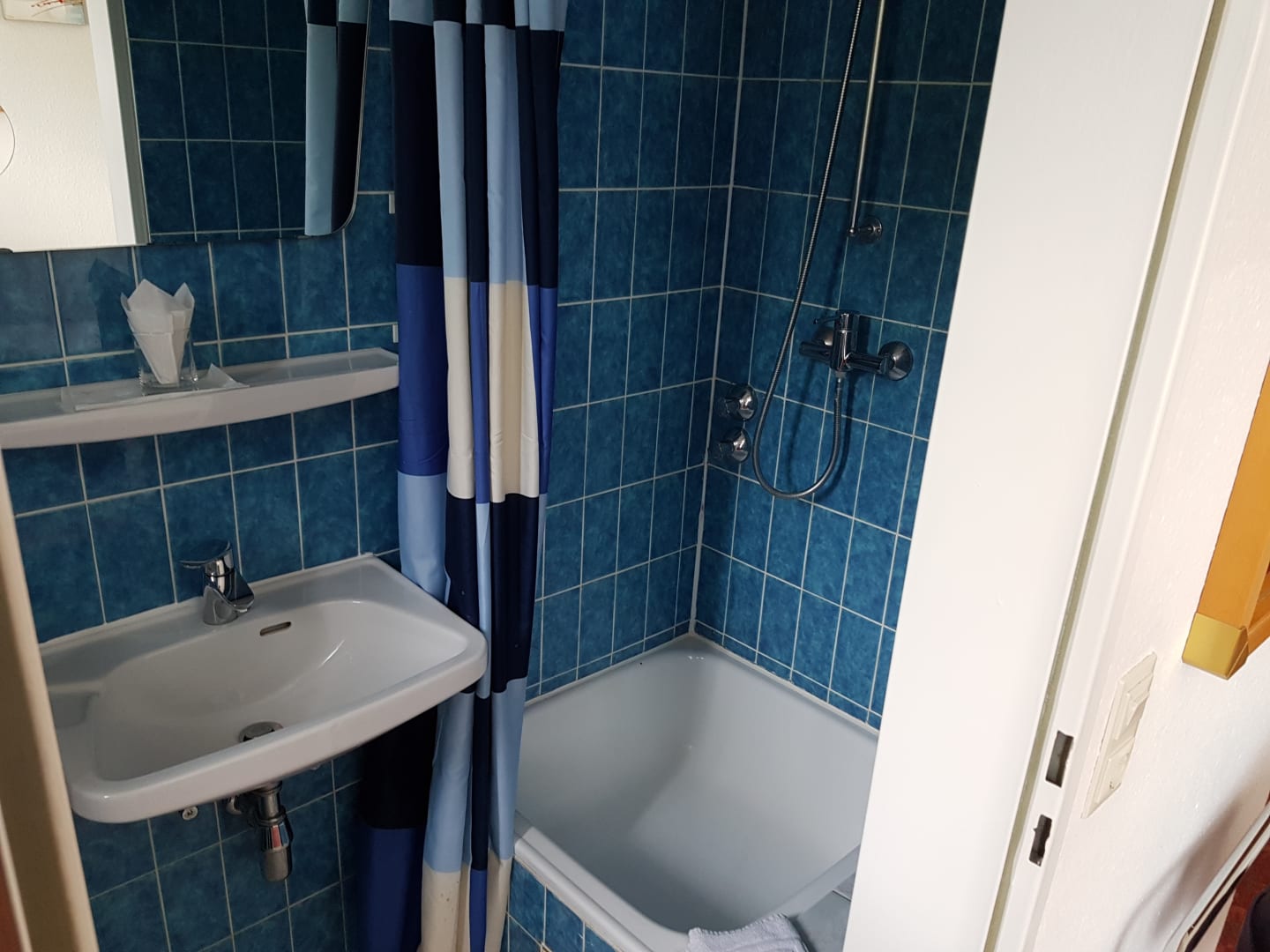 Bad mit Ansicht Waschbereich und Dusche