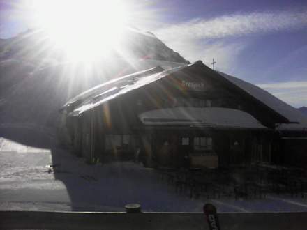 Grasjoch-Hütte im Hochjoch-Grasjoch am sonnigen Samstag früh morgens Ende Feb. 2020