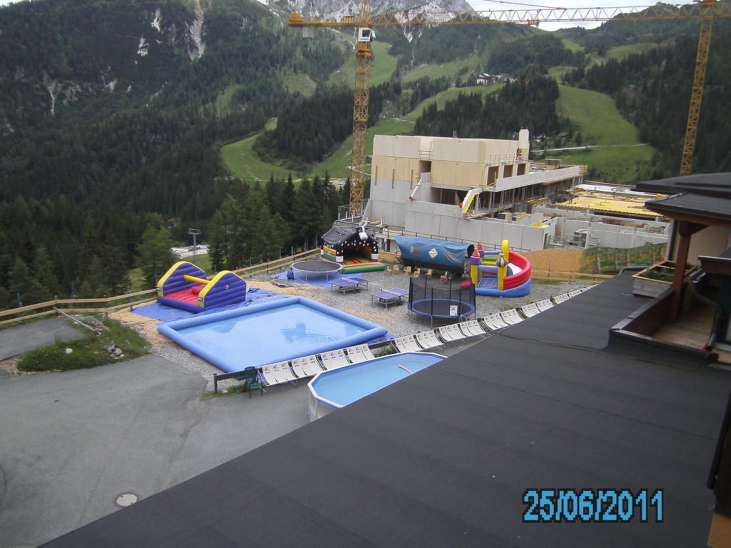 Außen- und SpielbereichDie Baustelle trübt nur wenig den Blick auf die Berge.