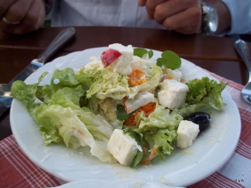 Leckerer Vorspeisensalat, frische Salate, Sauerrahmdressing, leckere Schafskäsestücke...einer reicht für zwei Personen als Vorspeise locker !