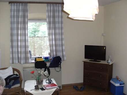 Blick auf das Fenster und Fernseher