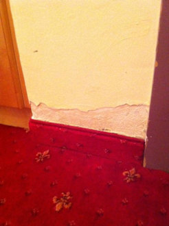 Im Eingangsbereiches des Zimmers fehlte Putz an der Wand.