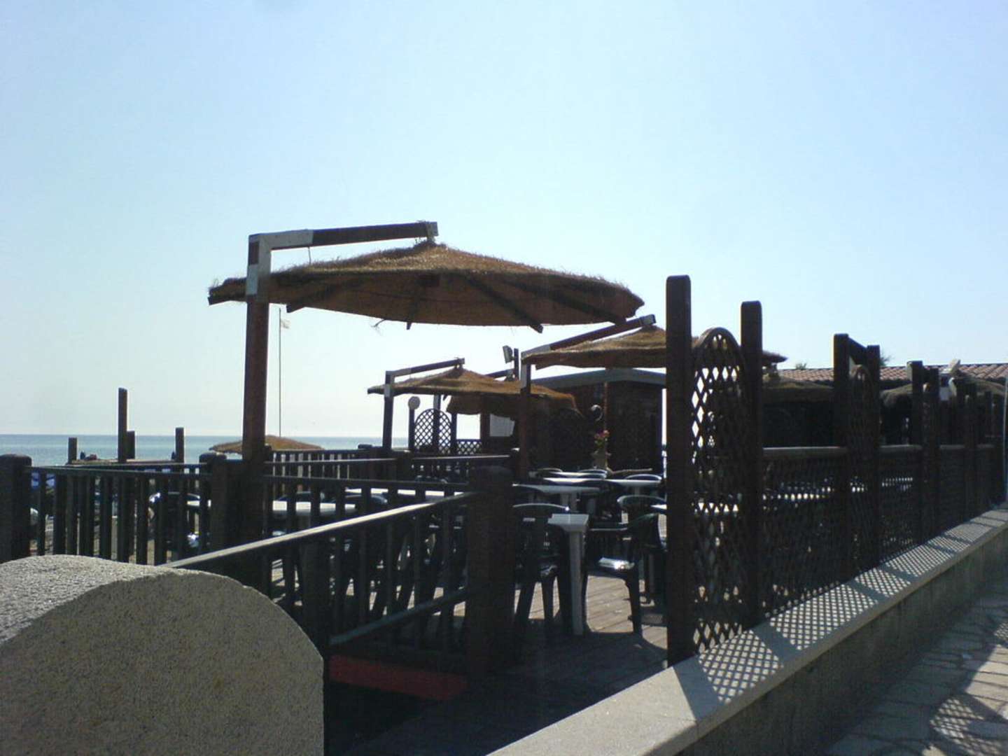Altra foto del lido. La struttura interamente in legno consente di muoversi all'interno di esso senza bruciarsi sul cemento. Impatto ambientale zero ed ecosostenibilità.