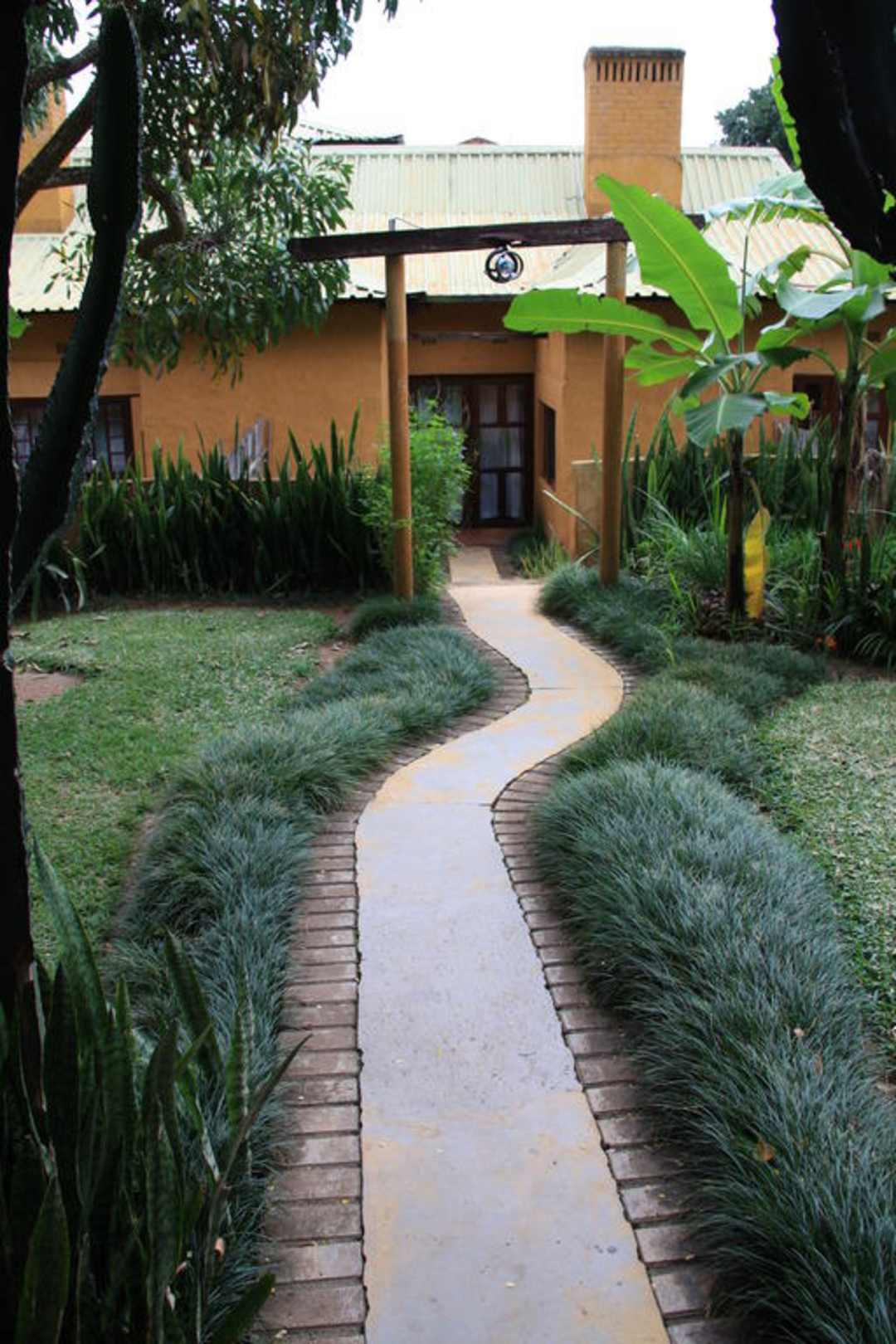 Vom Garten aus führt ein kleiner Pfad ins Zimmer.