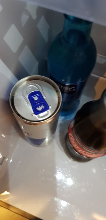 Minibar inhalt... der dreck in der falte der red bull dose... ein definitives NO GO