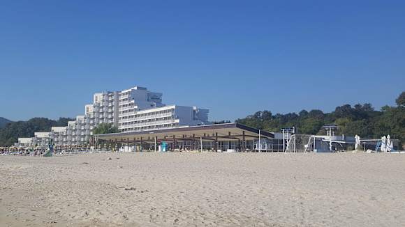 Das Hotel und der Strand.