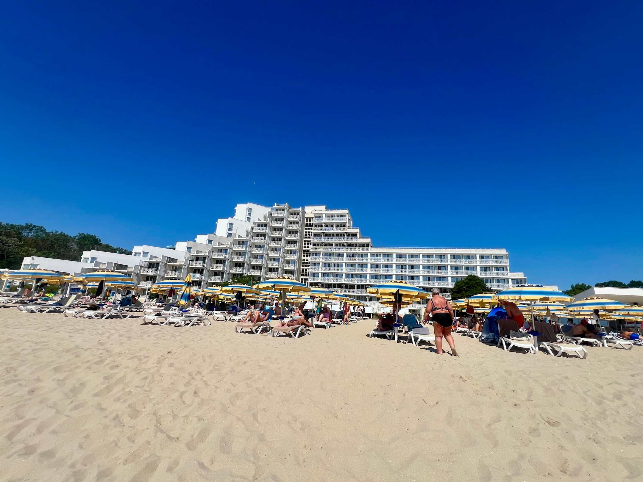 Strand mit Blick auf das Hotel