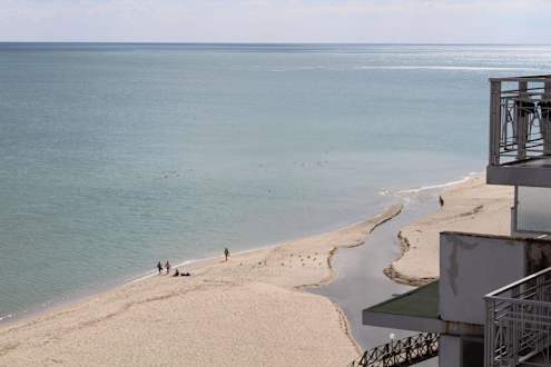 Balkonblick von Apartment 101ADer Mündungsbereich des Batova Flusses neben dem Hotel änderte täglich sein Aussehen.