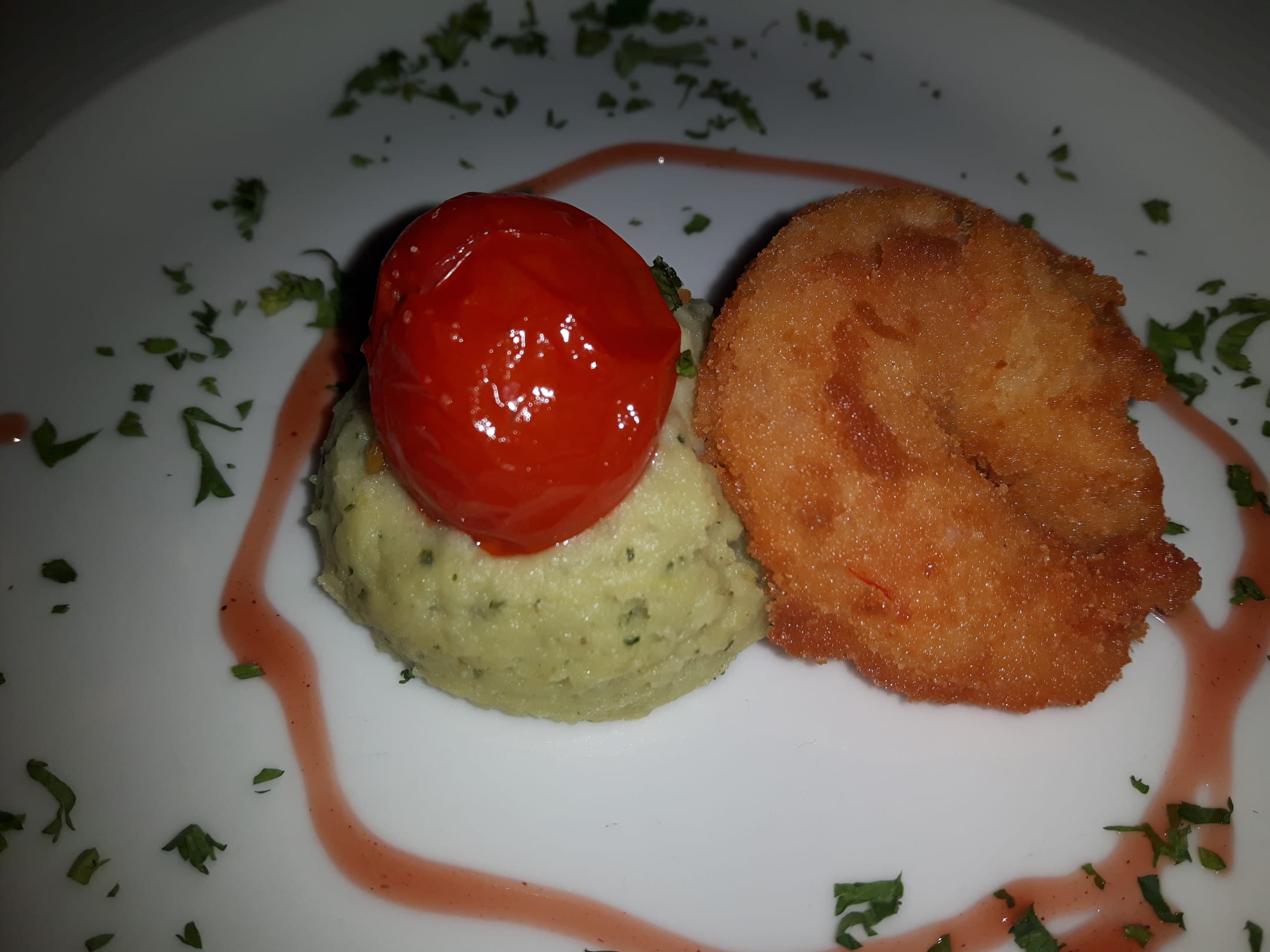 Gebackener Scampi auf Basilikumpüree Silvester