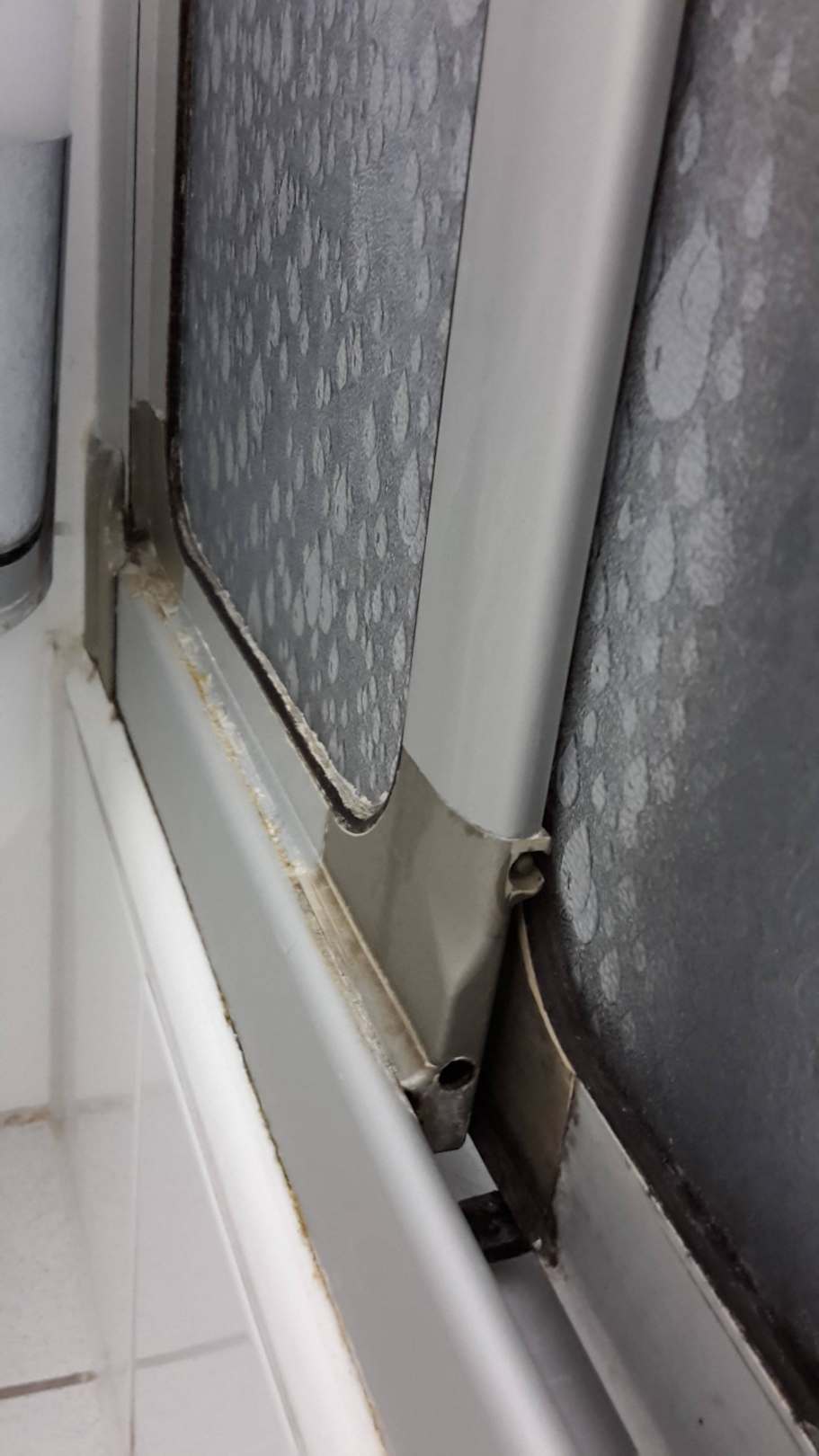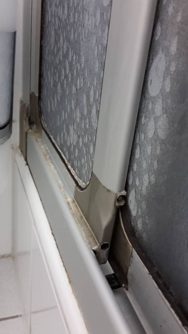 Schiebetür der Dusche, schwer verkalkt