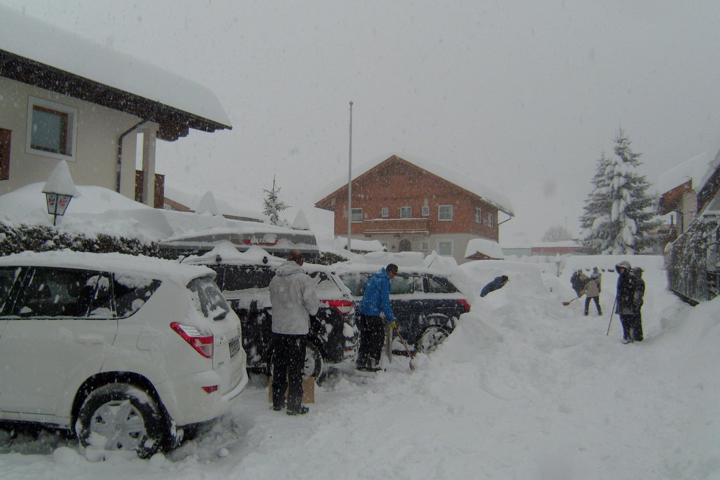 Alle helfen mit beim Schneeräumen