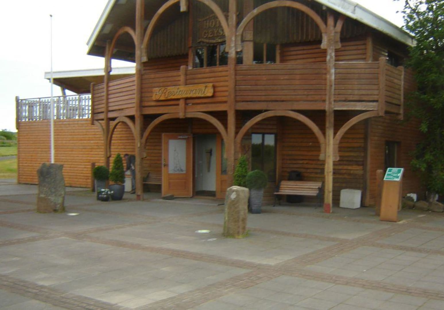 Das Hotelrestaurant auf dem Foto liegt wenige Schritte vom berühmten Geothermalfeld entfernt. Auf dem Hotelgelände stehen eine Reihe von netten Blockhäusern mit jeweils zwei Doppelzimmern und getrennte Terassen haben.