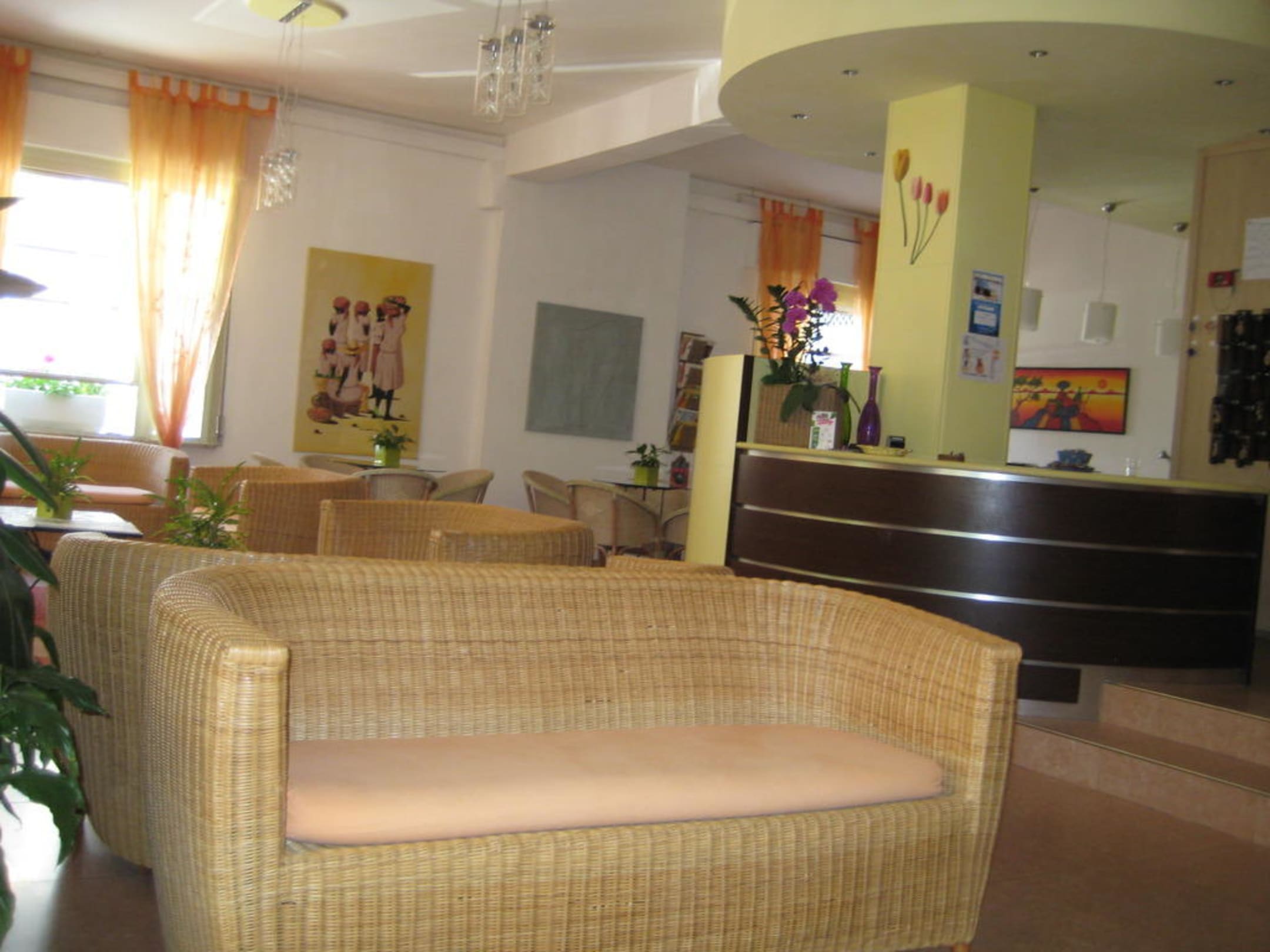 Im Hintergrund Rezeption und Bar