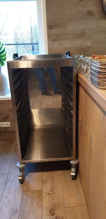 Abstellwagen für die zwingend erforderlich zu benutzenden Tabletts. Kantine kein Frühstücksraum