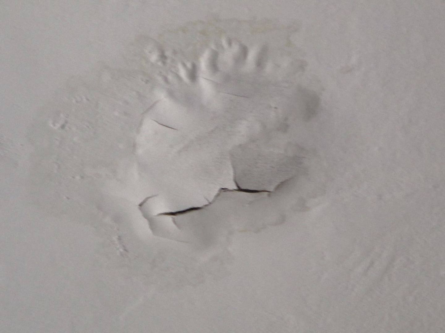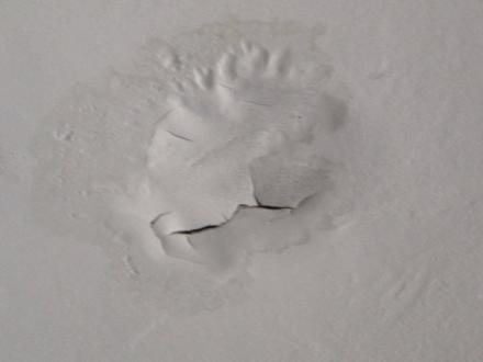 an einer Stelle der Decke kam Wasser durch; es tropfte zuerst, dann blieb dieser Fleck zurück