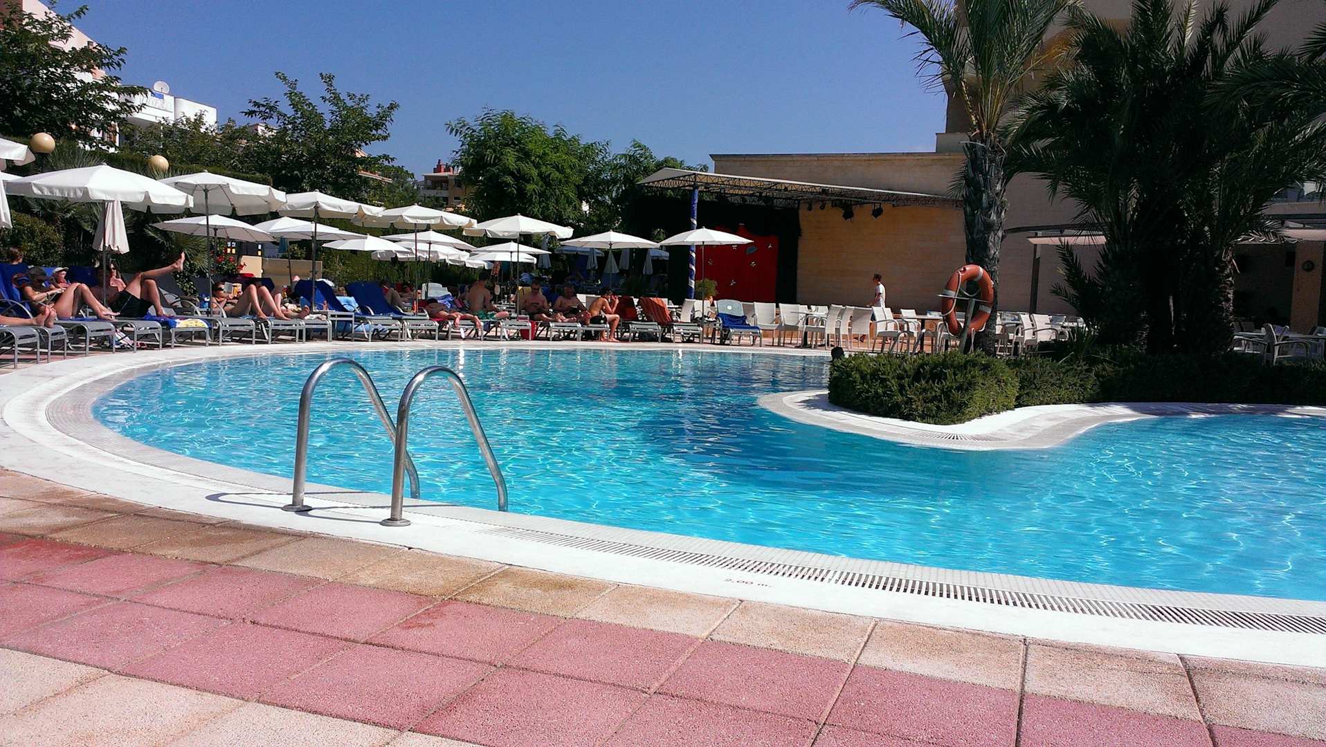Viele Liegen und Sonnenschirme stehen zur Verfüg.