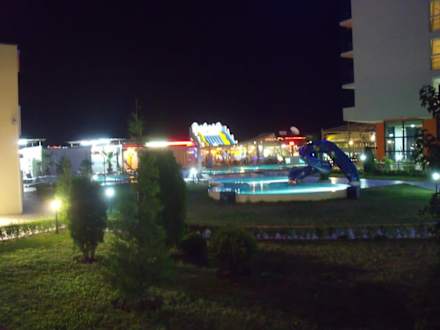 Ausblick vom Zimmer (Nebengebäude) zum Pool