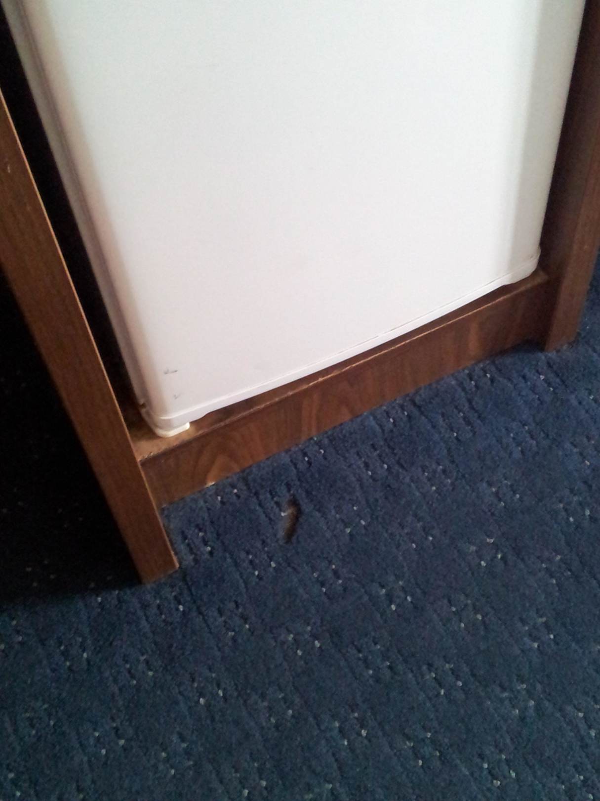 Brandloch im Teppich vorm Kühlschrank