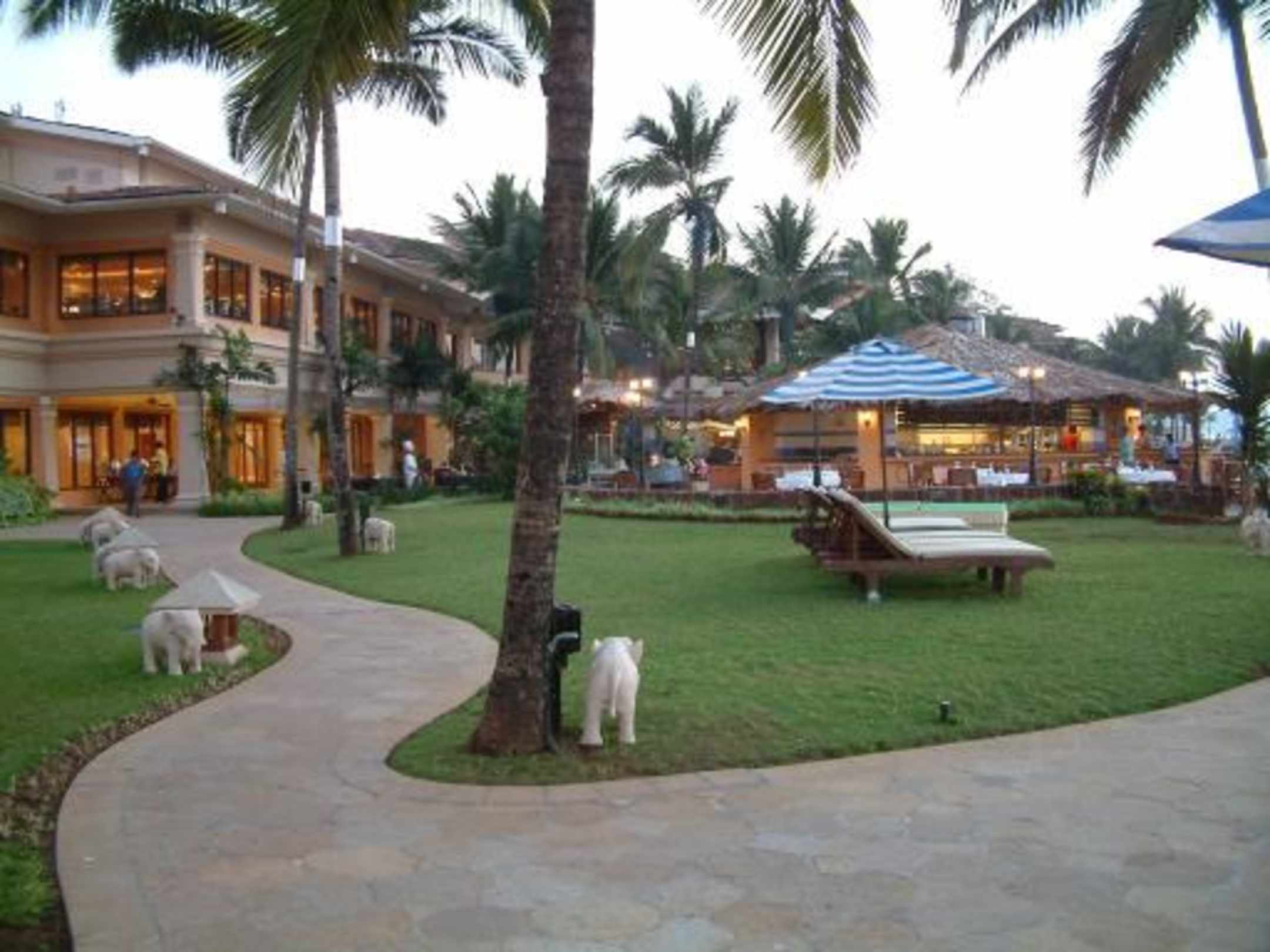 Rückseite des HotelsIm Erdgeschoss sind die Restaurants. Das Gebäude hinter dem Sonnenschirm ist ein sehr gutes Fischrestaurant "Simply Fish"