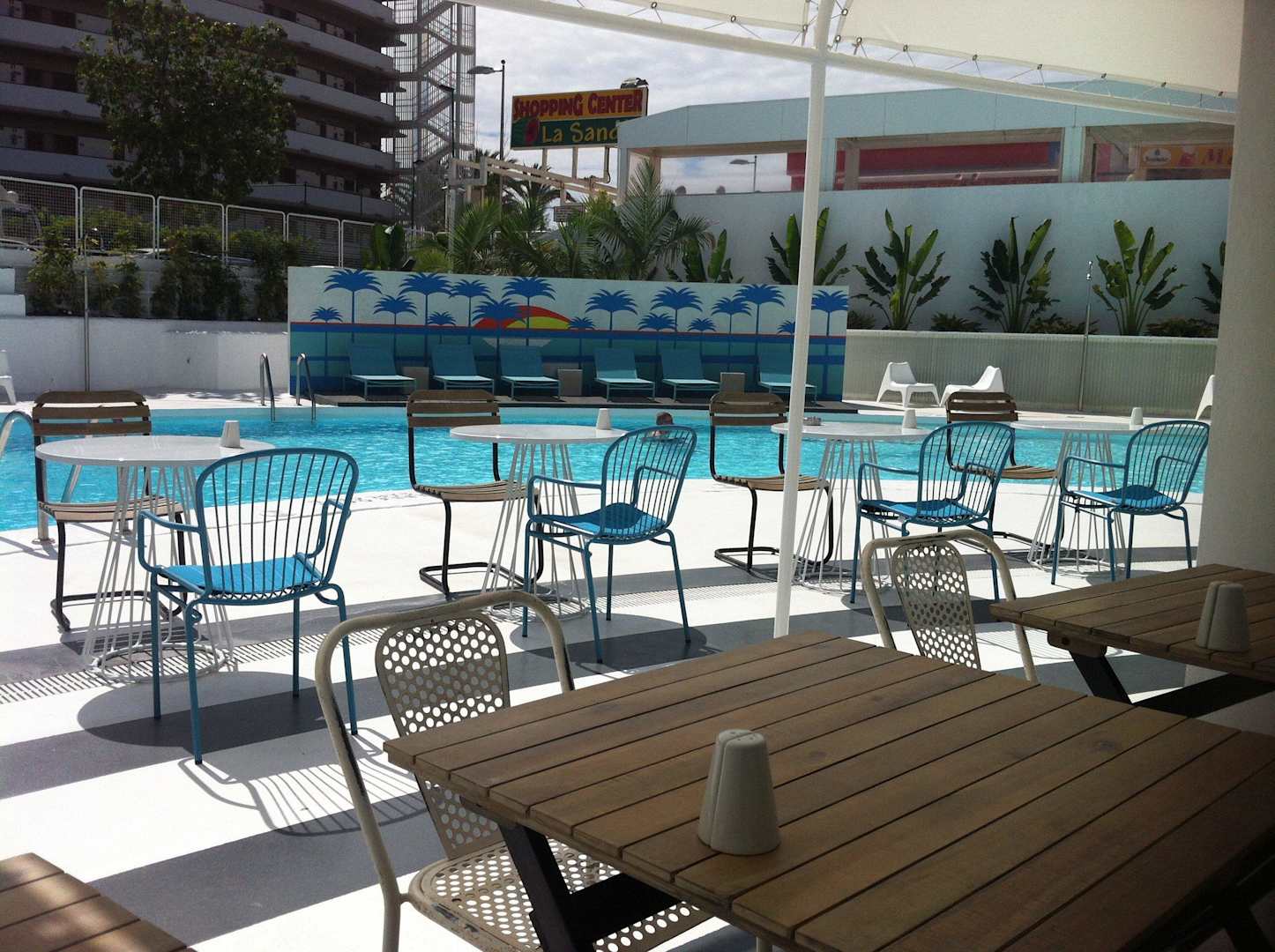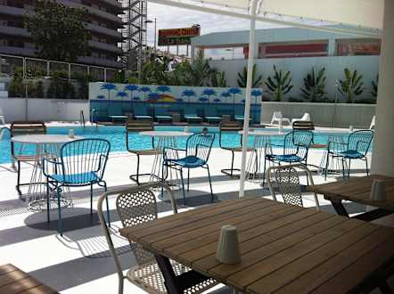 Poolanlage von Frühstück aus