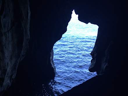 Durch einen Tunnel muss man zum Strand gehen, zwischendurch kann man dieses schöne Bild sehen