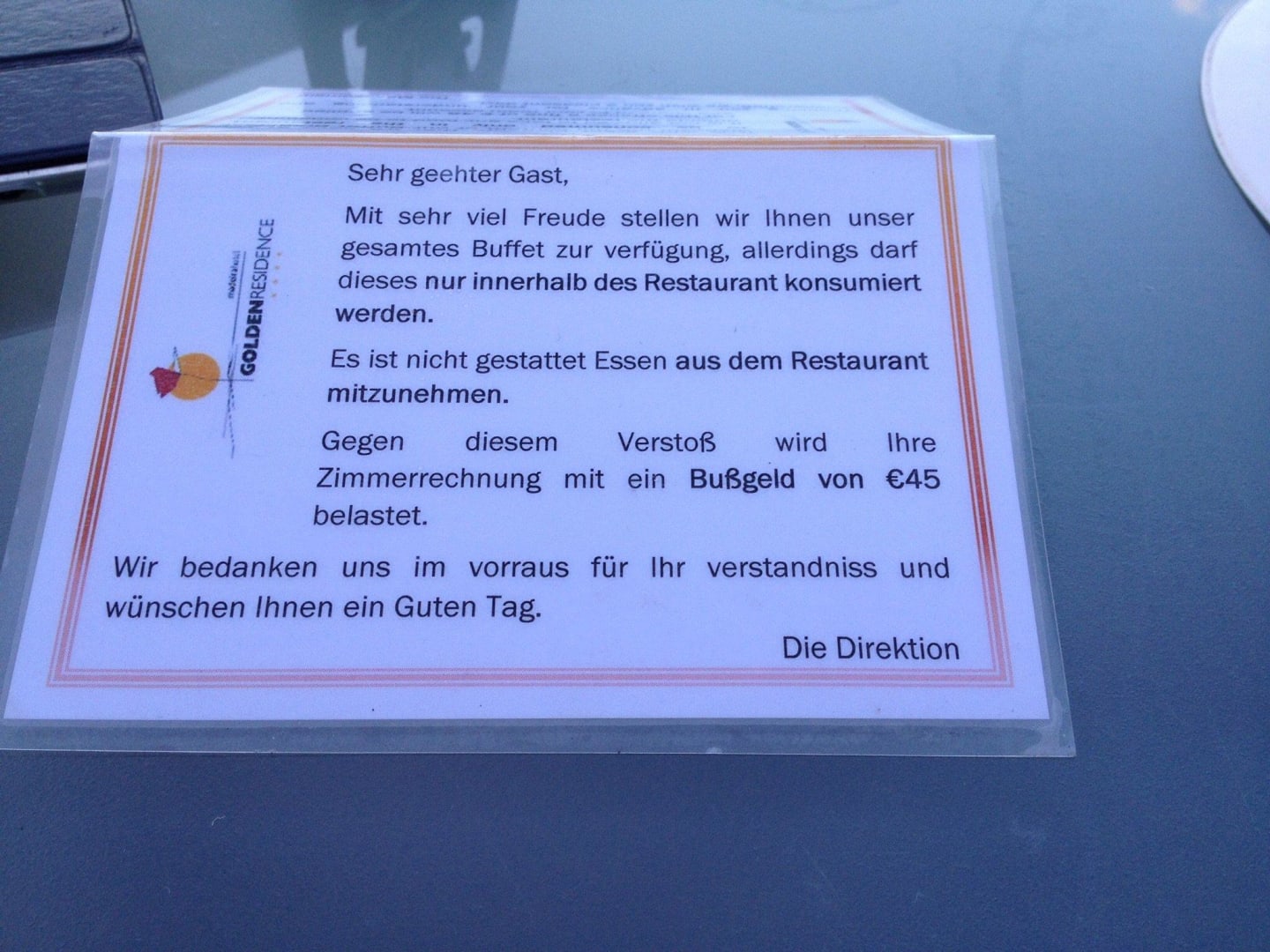 Begrüssung auf dem Frühstückstisch