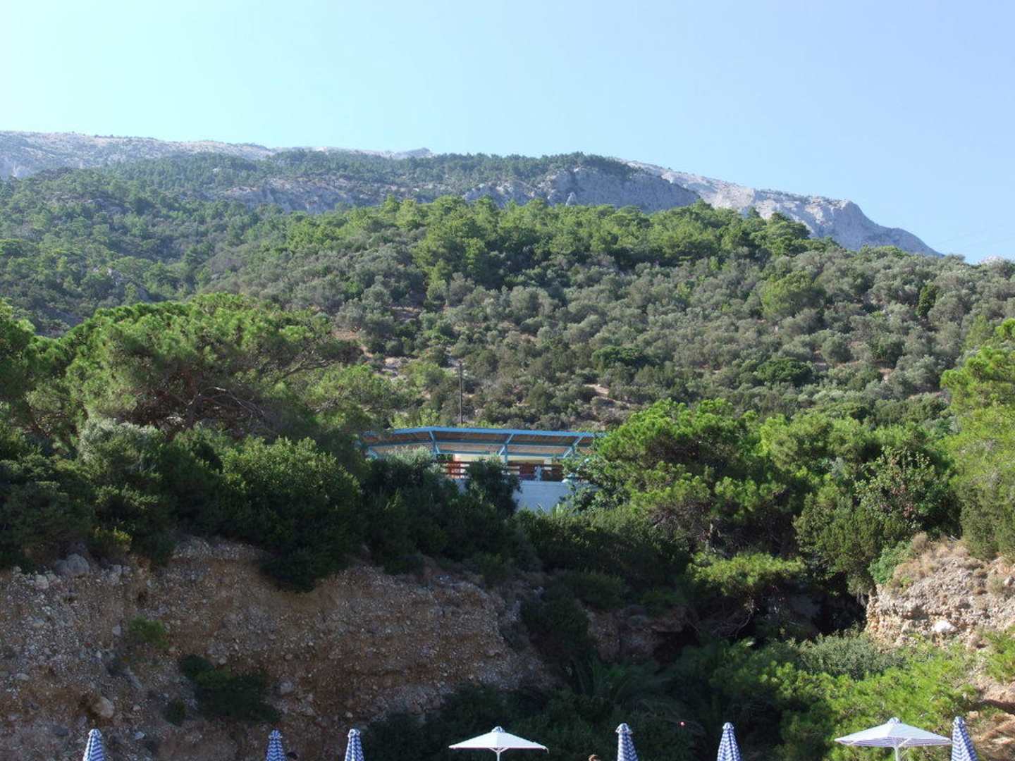 Blick vom Strand zum Hotel (neuer Teil), rechts geht die Treppe zum Hotel hoch. Es ist wirklich noch eine völlig unberührte Landschaft