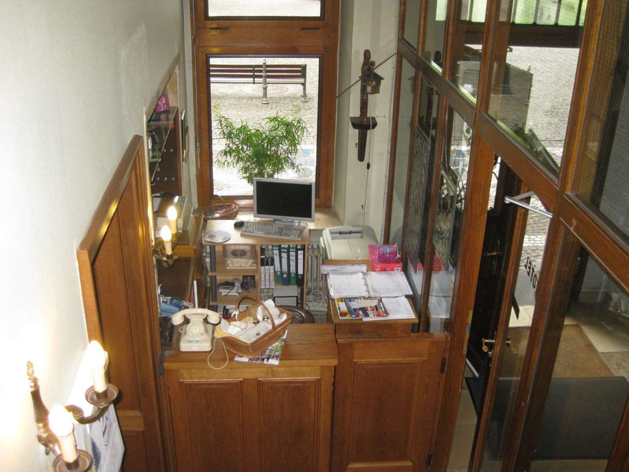 Auf dem Thresen sieht man das Schlüsselkörbchen. Rechts geht es auf die Straße.