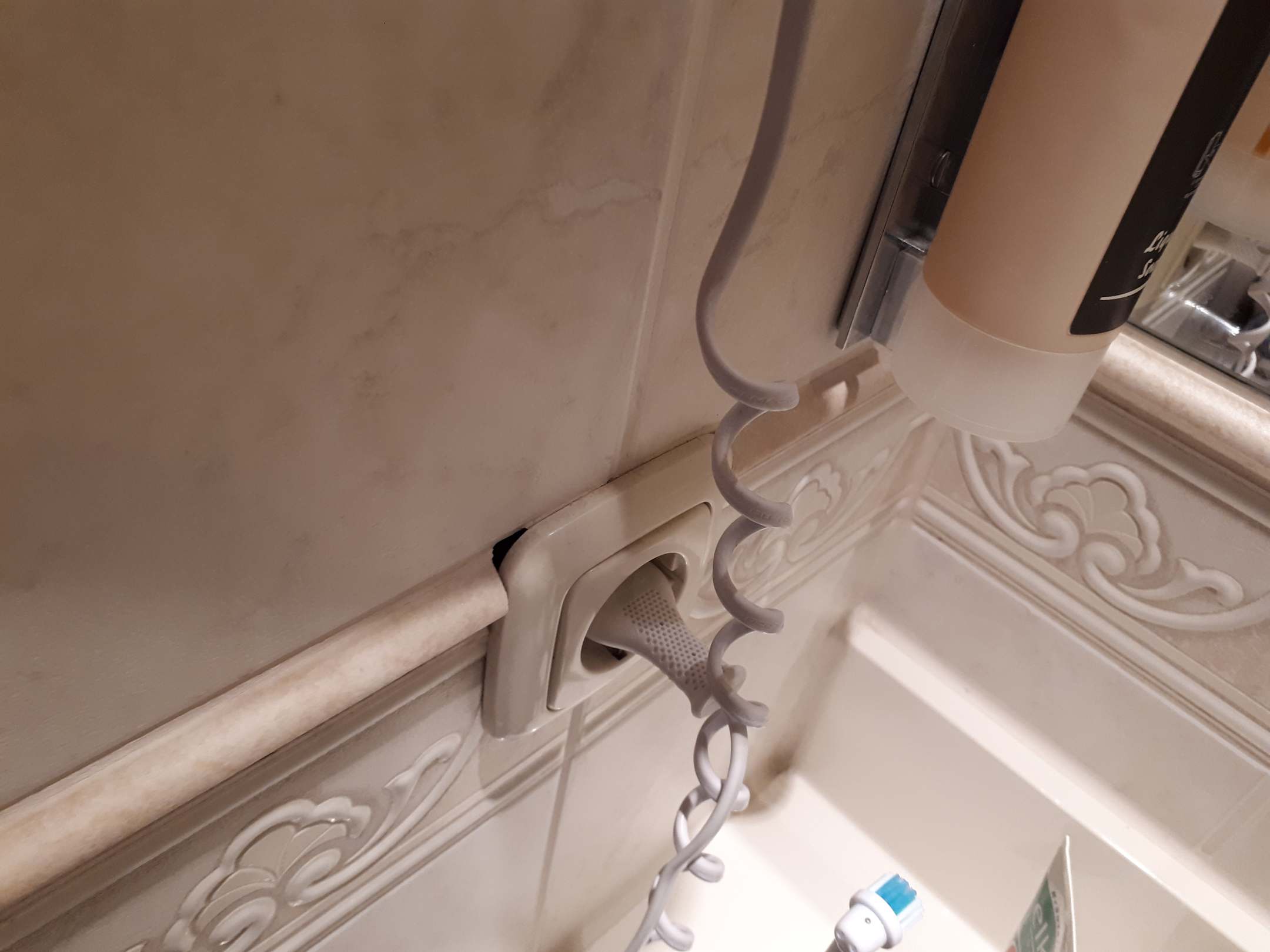 Steckdose im Bad sauber verkleidet.