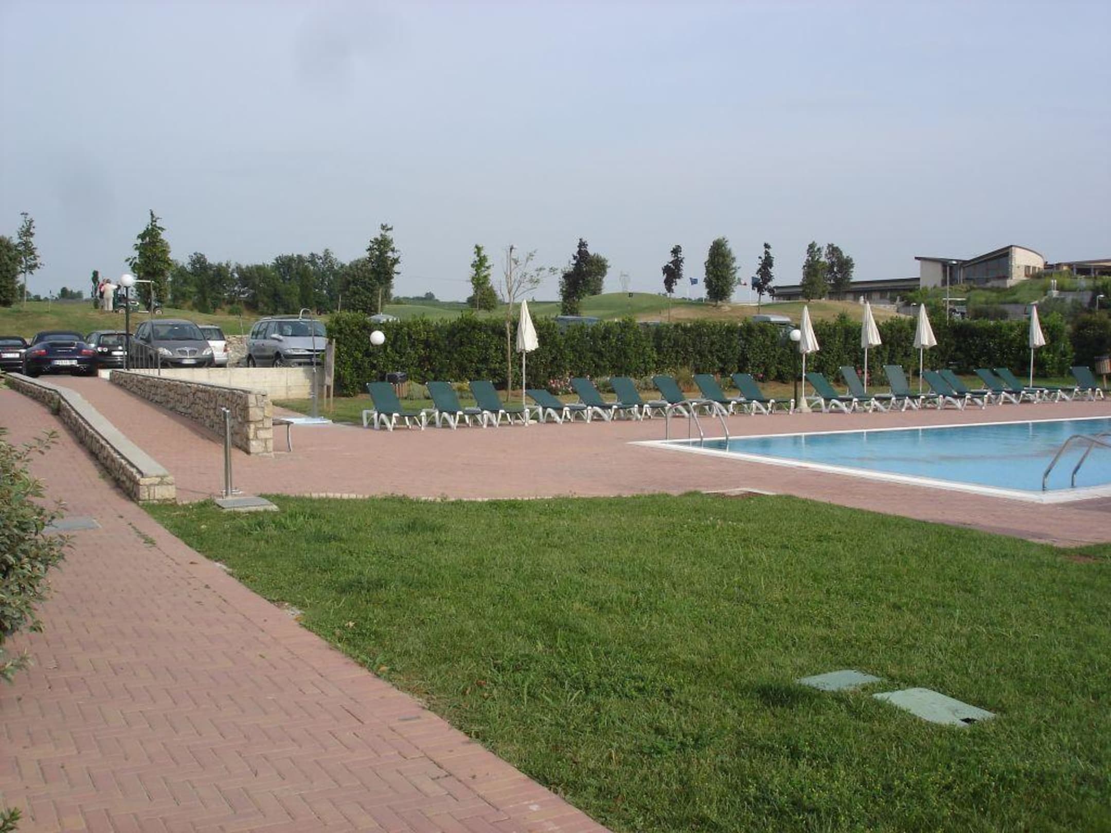 Vor der Terrasse verläuft der WegZum Pool und zur Straße (mit Parkplatz). Die Straße ist eine Sackgasse und endet an der Rezeption der Golf Residence.