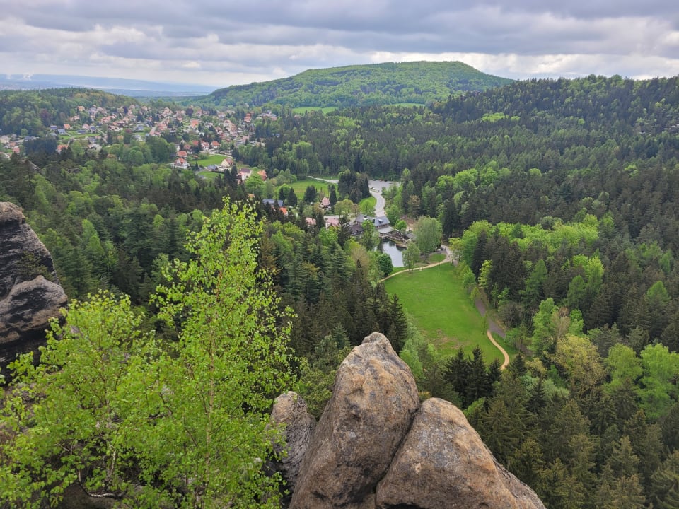 Blick vom Nonnenfelsen aufs Hotel Gondelfahrt