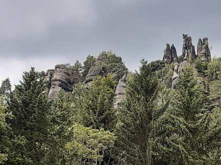 Blick zum Nonnenfelsen, an dessen Fuße das Hotel liegt