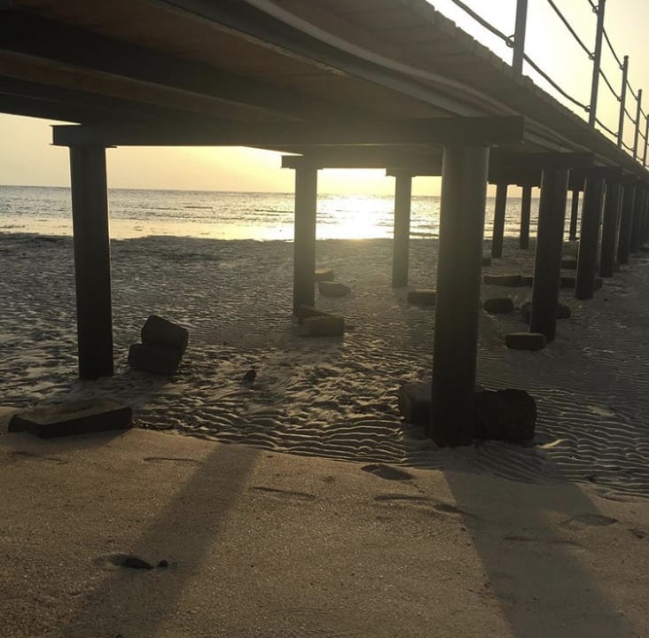 Steg zum Außenriff bei Sonnenaufgang.