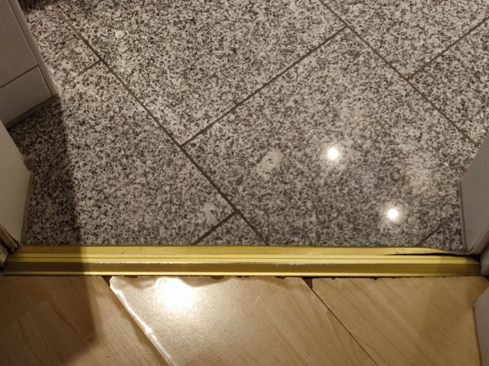 ZimmerVon wegen Parkett - der billige Laminat-Fußboden war zum Bad hin aufgerissen und die Metallkante scharf.