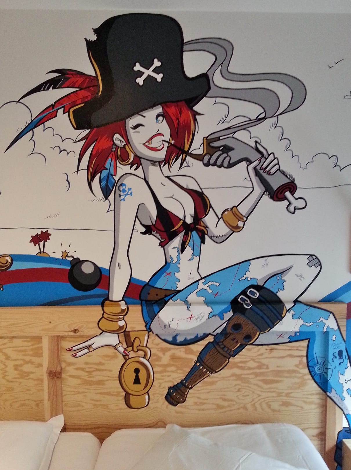 Wanddekor geht direkt in das Mobiliar über.