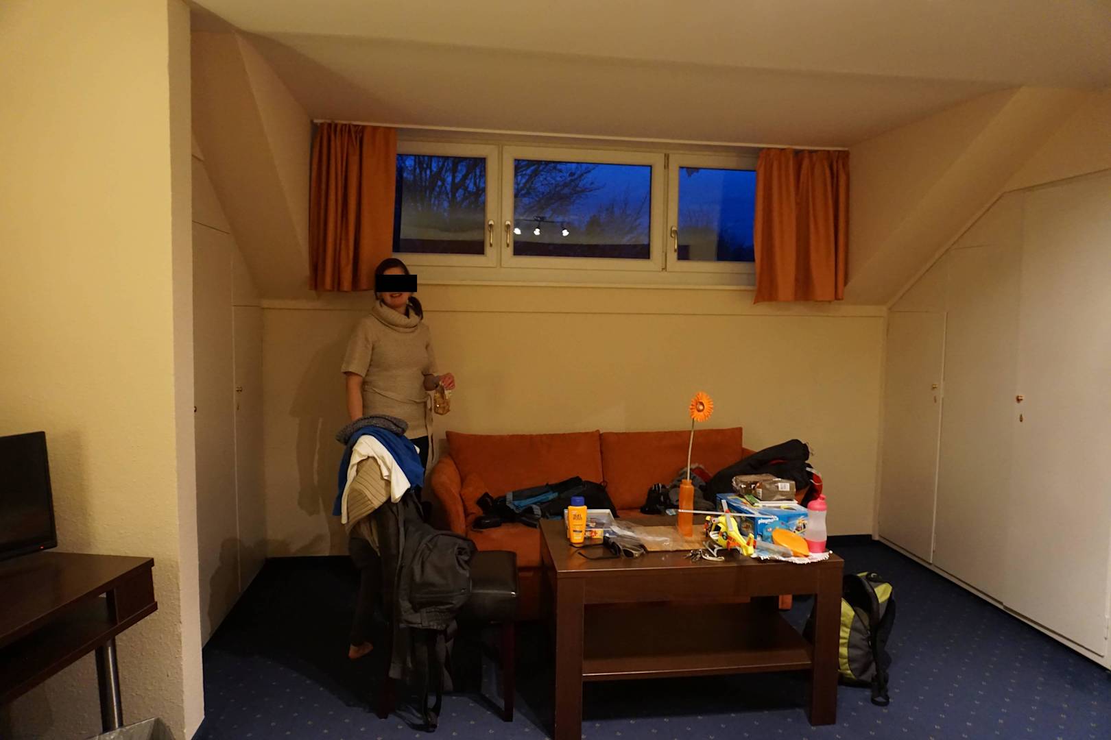 Bei dieser Fensterhöhe, bleibt einem die eigentlich schöne Aussicht, die man normalerweise hätte, leider verwehrt, es sei denn man steigt auf einen Stuhl.