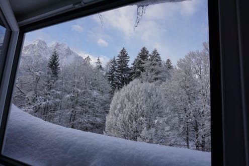 Ausblick aus dem Dachfenster, wenn man auf dem Stuhl steht