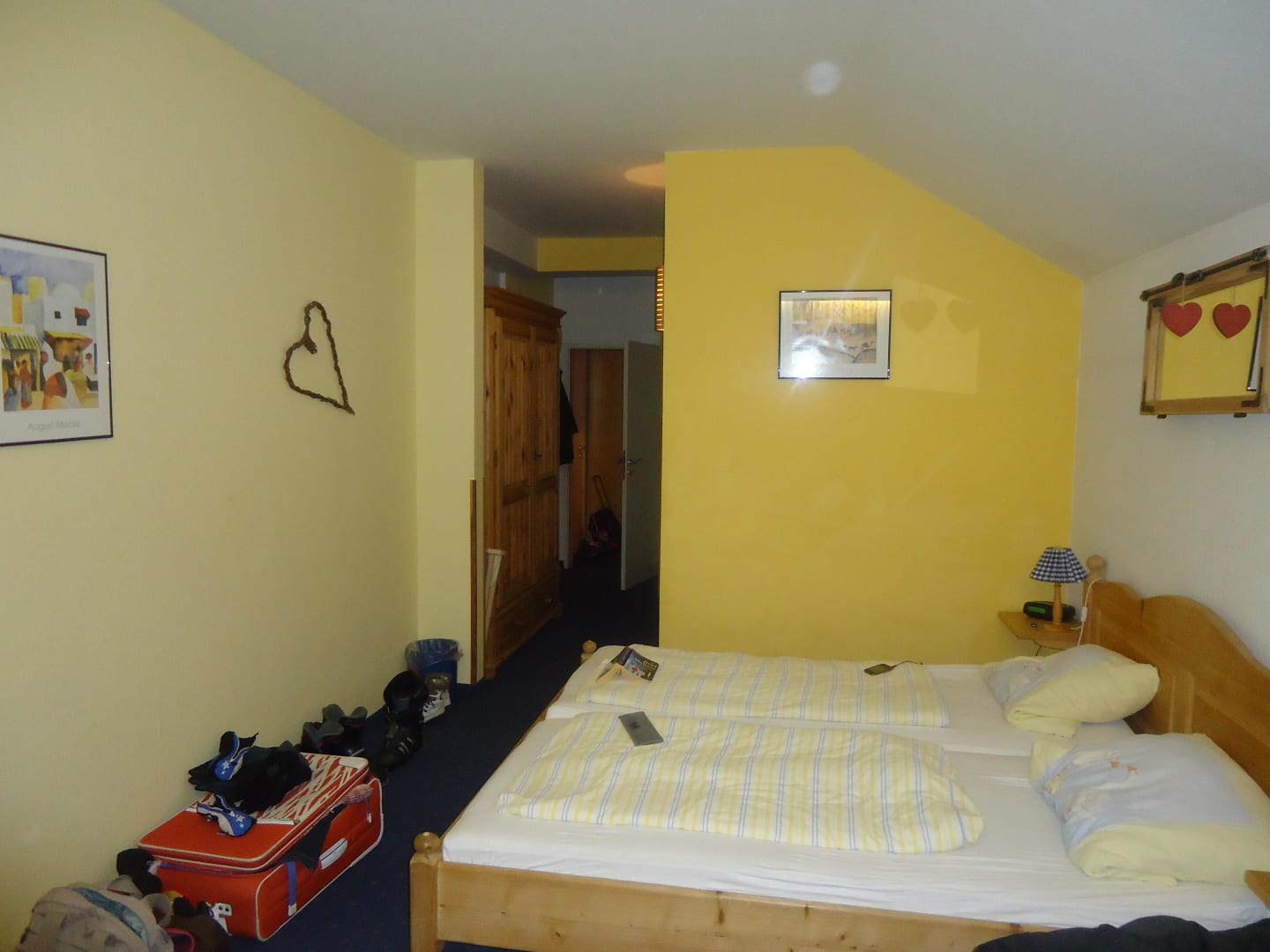 Zimmer 52 mit Blick auf die abschließbare Verbindungstür zum Kinderzimmer. Das Kinderzimmer (Zimmer 53) hat ein Stockbett und ein eigenes WC, kann also auch seperat benutzt werden.