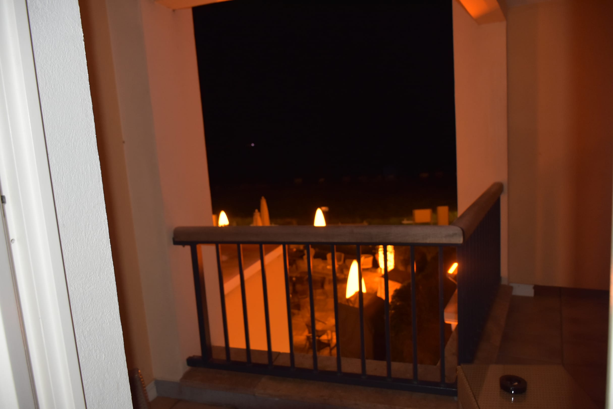 ZimmerBalkon mit Aussicht und den Hof wo den ganzen Tag von morgens bis abends gegessen wird von anderen Gästen und auch die Gespräche stattfinden