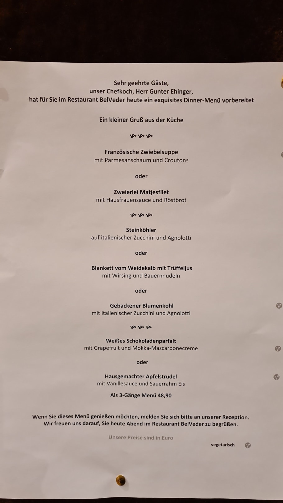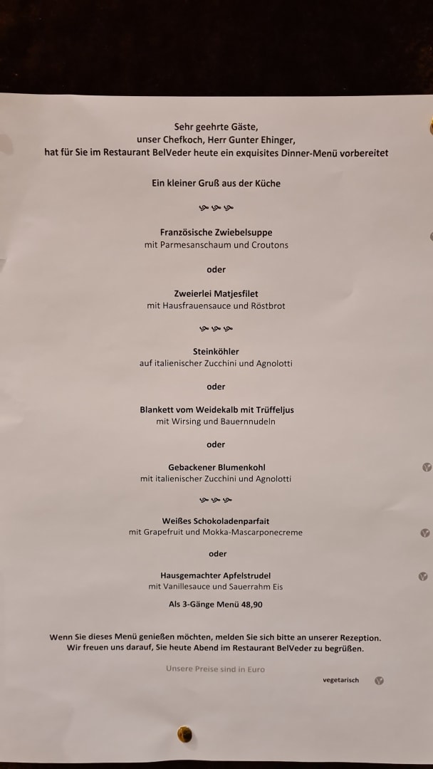 Restaurant Belvedere Menükarte