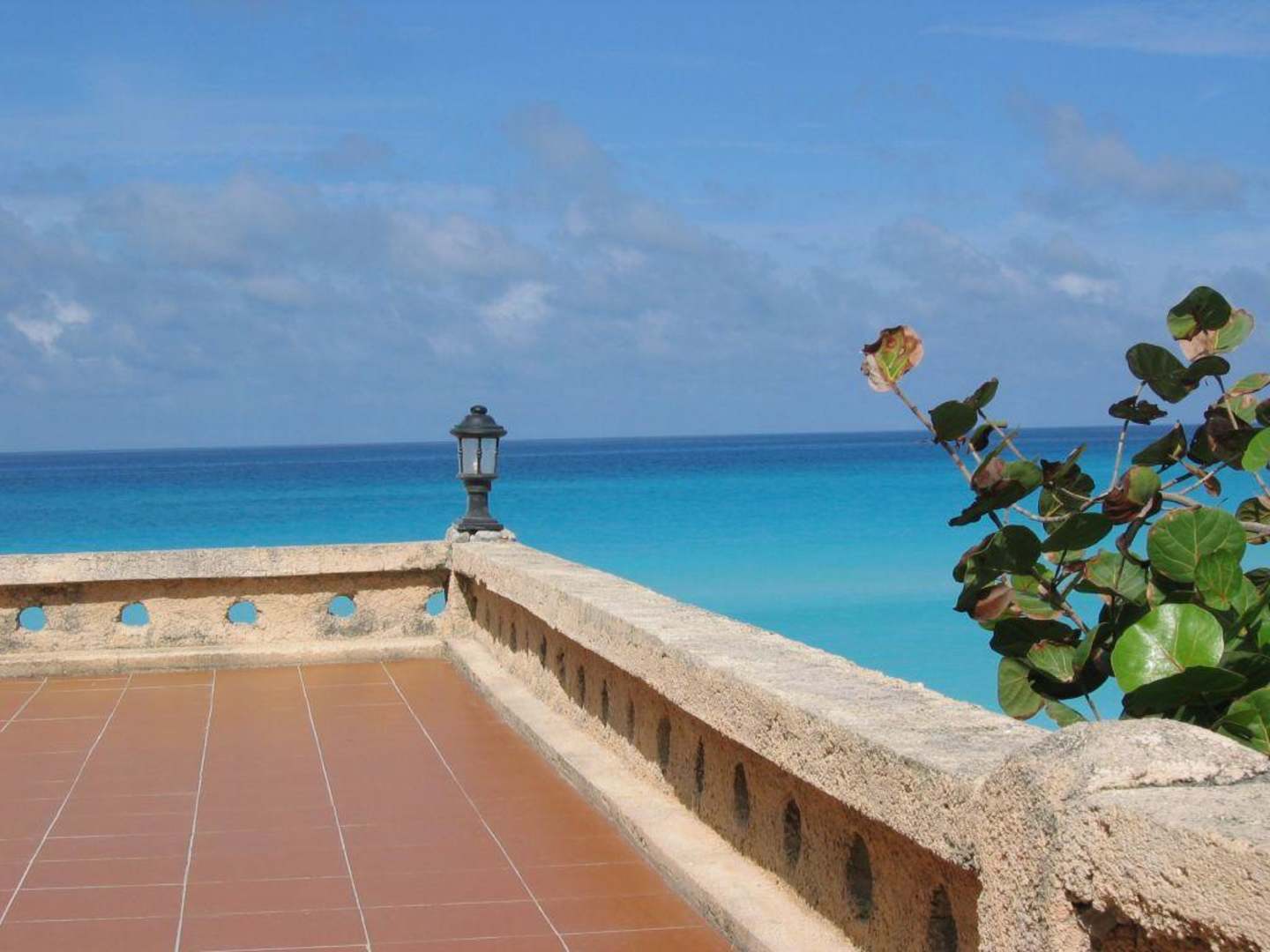 Blick auf das Meer von der Terrasse des Restaurants