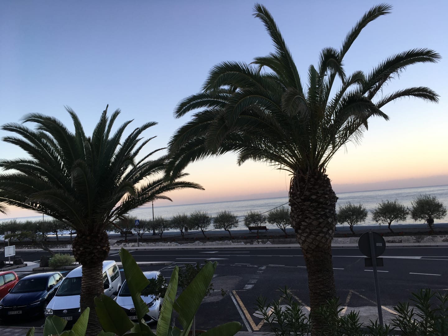 Morgengrauen aus unserem Zimmer mit Meerblick gesehen.