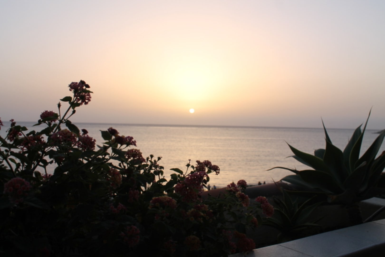 Sonnenuntergang von der Restaurantterrasse gesehen.