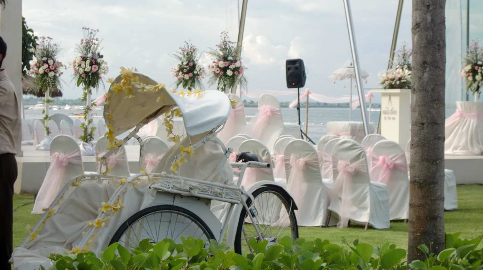 hauseigene Hochzeitskapelle am Strand wird dekoriert