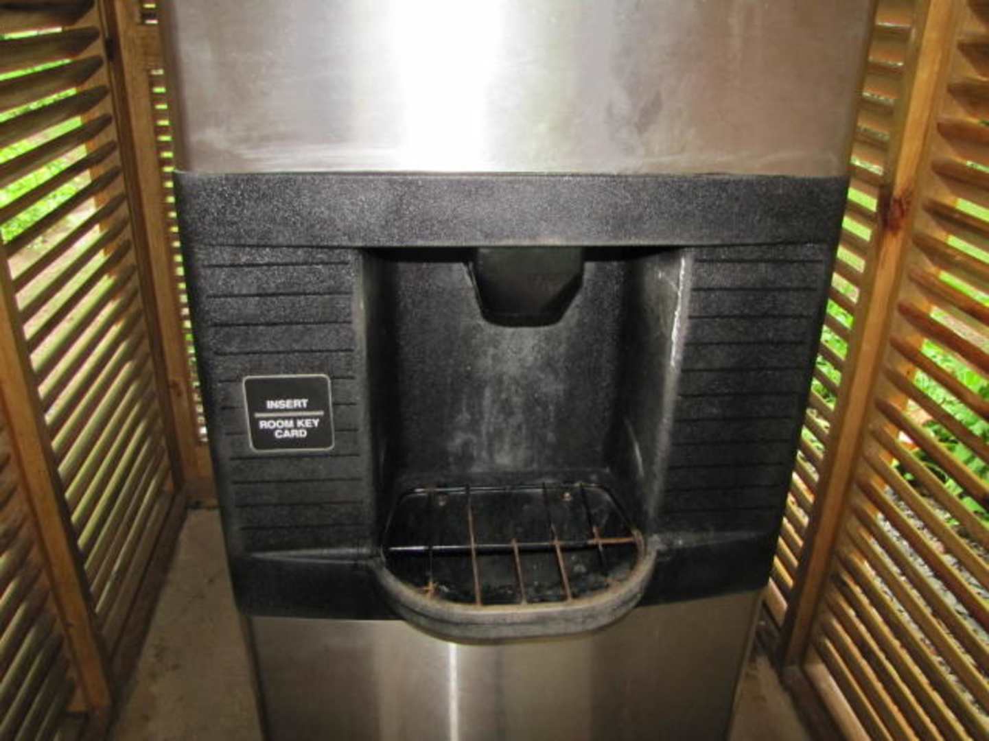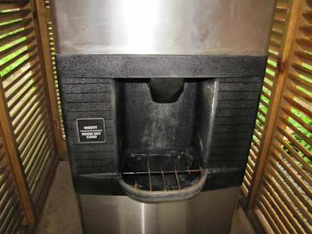 Między budynkami stoją maszyny do robienia loduPojemniki na lód znajdują się w każdym pokoju.
