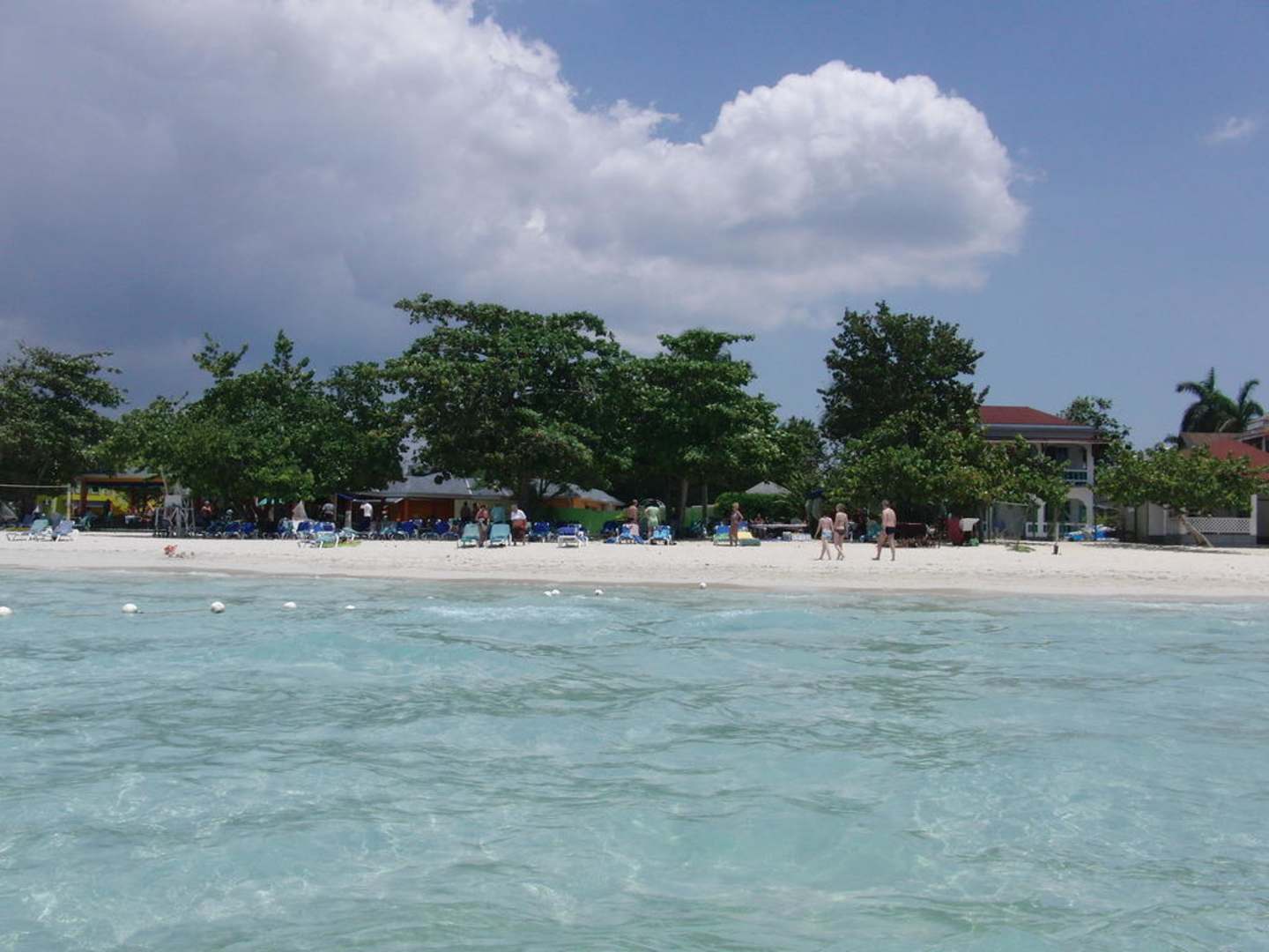 Hotelstrand vom Boot aus