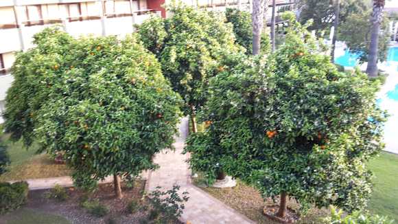 Orangenbäume neben Poolanlage