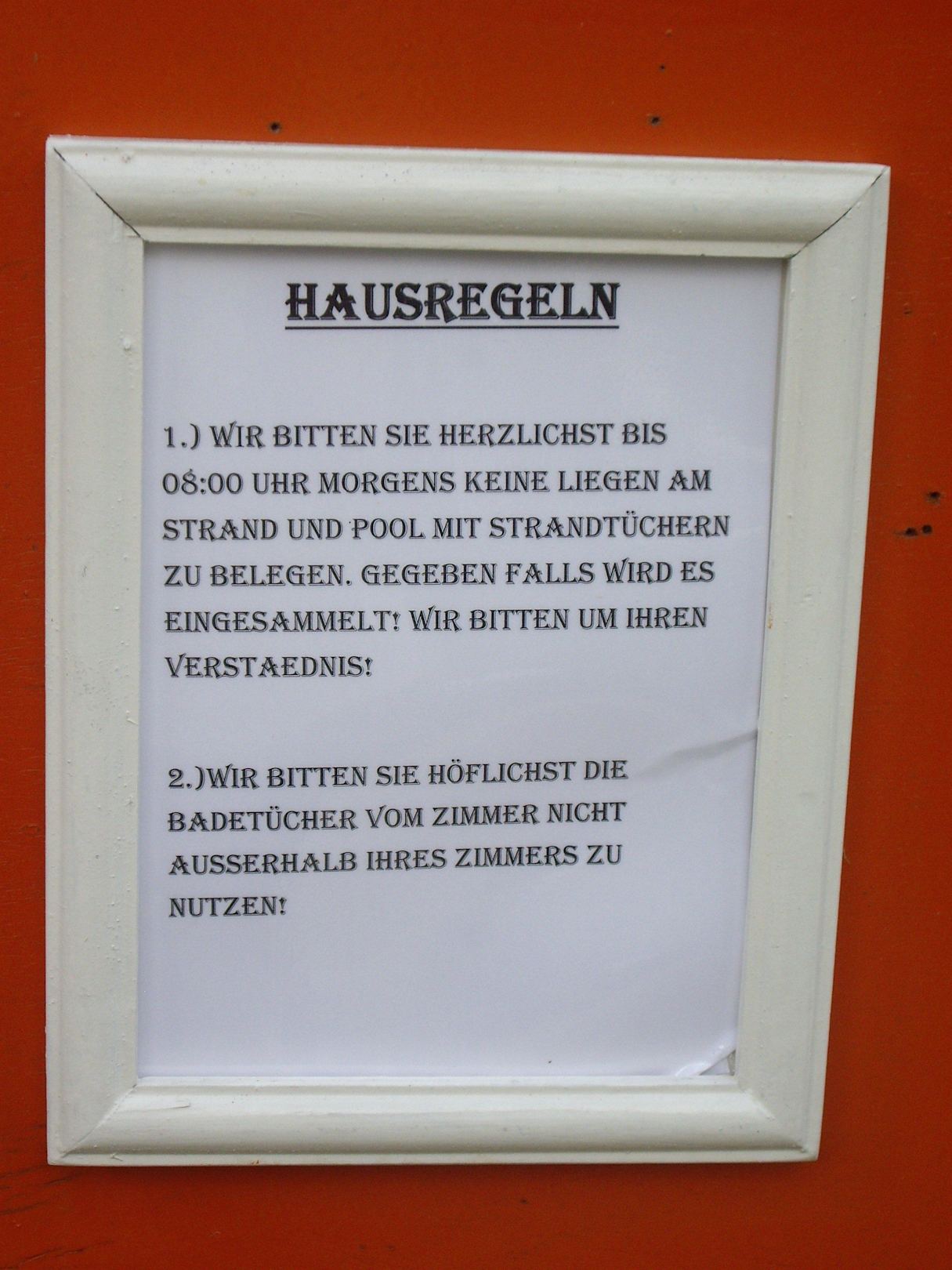 Hausregeln, die wohl nur für die Urlauber gelten