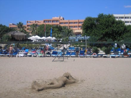 Strand , im Hintergrund Hotel